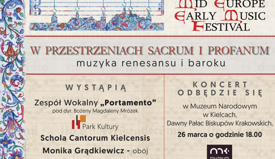 Przepiękny koncert muzyki renesansu i baroku w ramach Mid Europe Early Music Festiwal odbędzie się w Muzeum Narodowym w Kielcach.