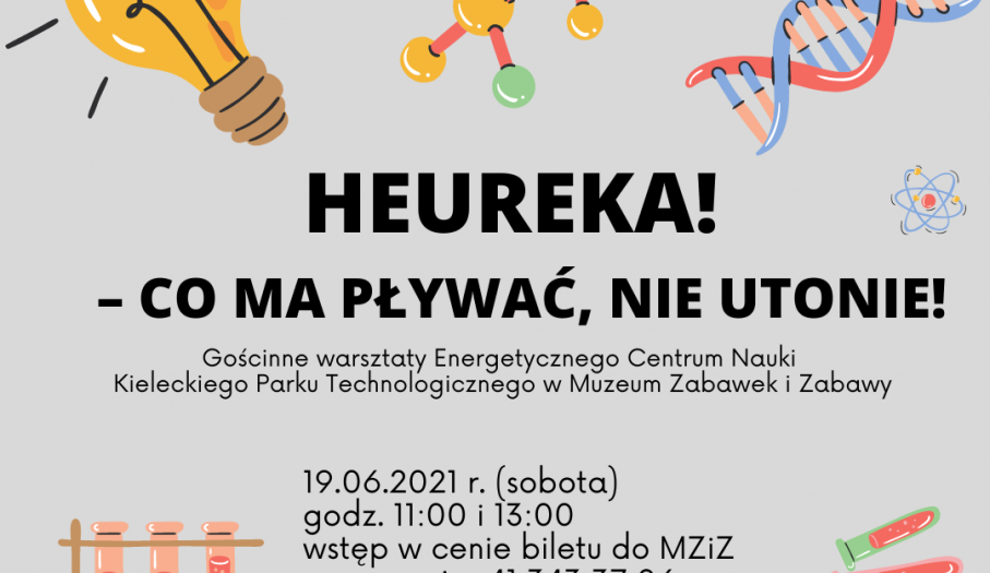 W ramach cyklu #pasjonującezabawki już w sobotę 19.06. zapraszamy na gościnne warsztaty pt. HEUREKA! – CO MA PŁYWAĆ, NIE UTONIE! przygotowane przez Energetyczne Centrum Nauki Kielecki Park Technologiczny, które odbędą się w Muzeum Zabawek i Zabawy przy placu Wolności 2.