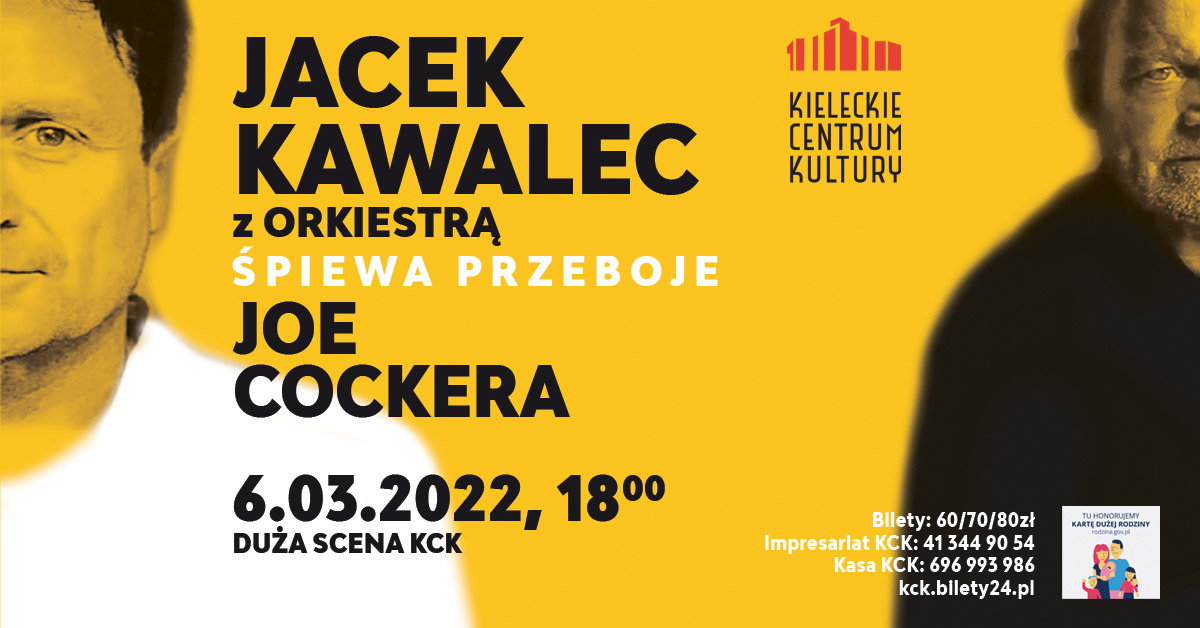 Z okazji zbliżającego się Dnia Kobiet zapraszamy wszystkie kobiety i wszystkich mężczyzn do Kieleckiego Centrum Kultury! Jacek Kawalec z orkiestrą śpiewa przeboje Joe Cockera.