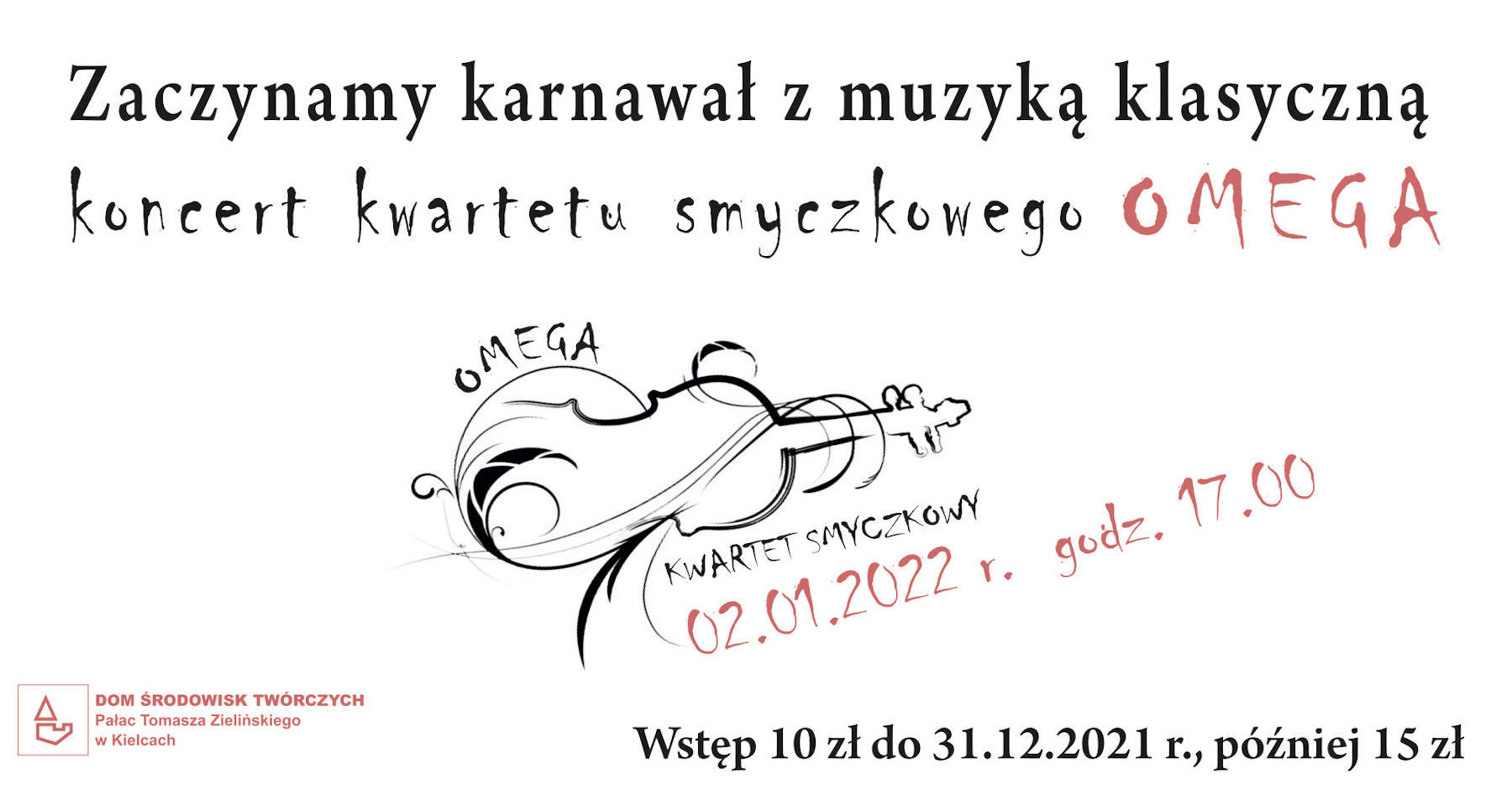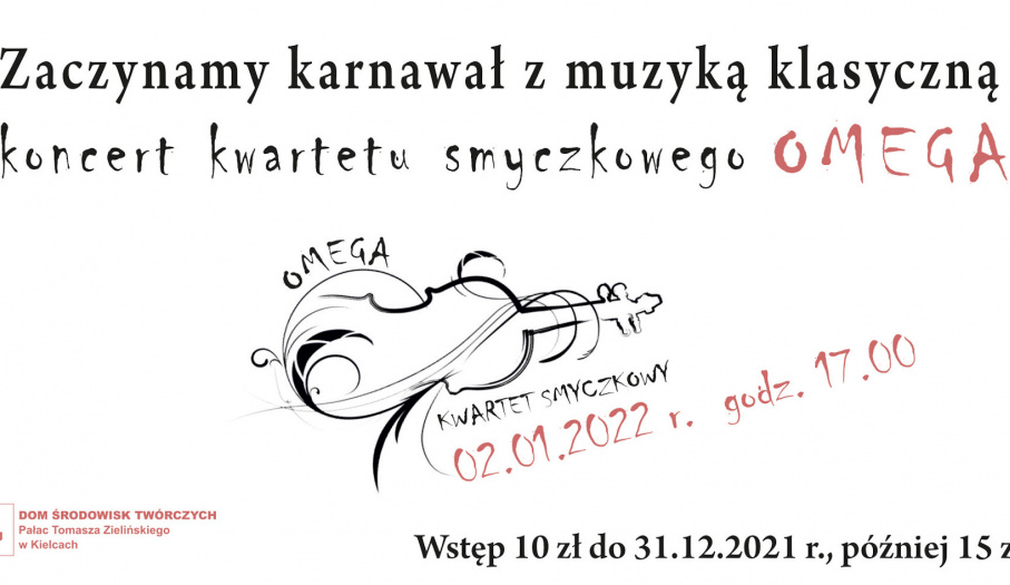 Dom Środowisk Twórczych zaprasza na rozpoczęcie karnawału. Utwory Mozarta, Straussa, Bacha oraz innych wielkich kompozytorów zagra kwartet smyczkowy OMEGA w składzie: