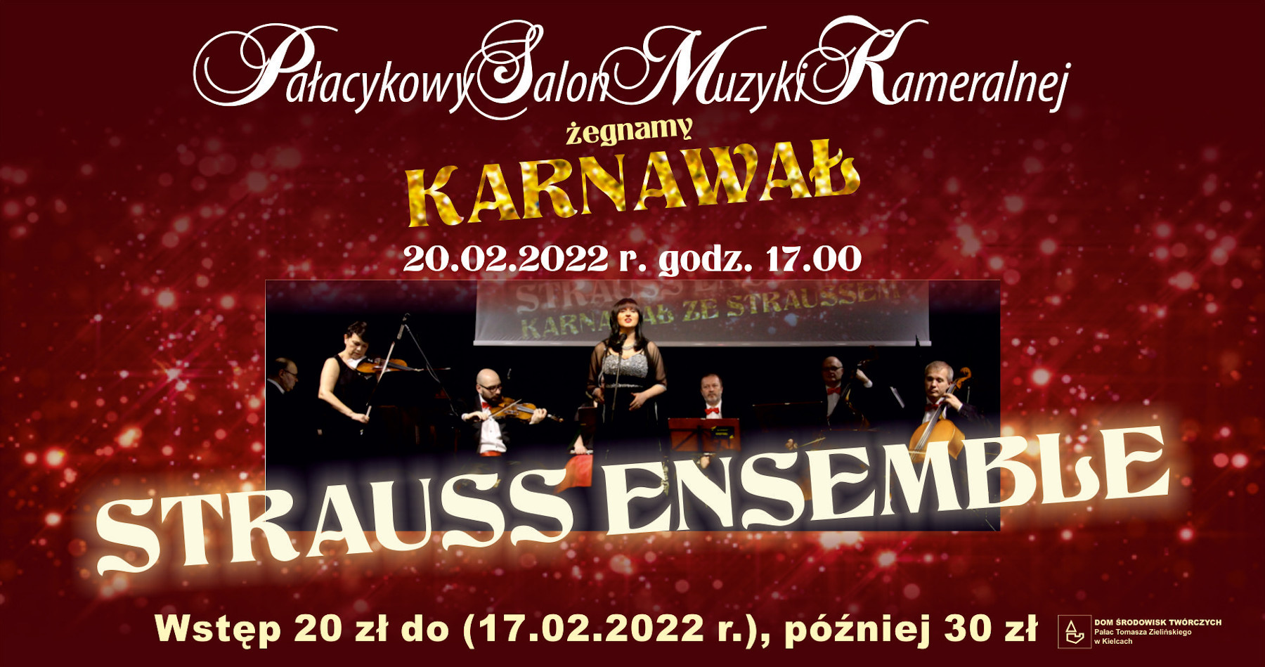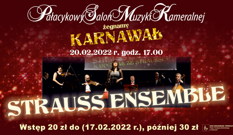 W niedzielę 20 lutego Dom Środowisk Twórczych zaprasza na koncert Strauss Ensemble – żegnamy karnawał w Pałacykowym Salonie Muzyki Kameralnej.
