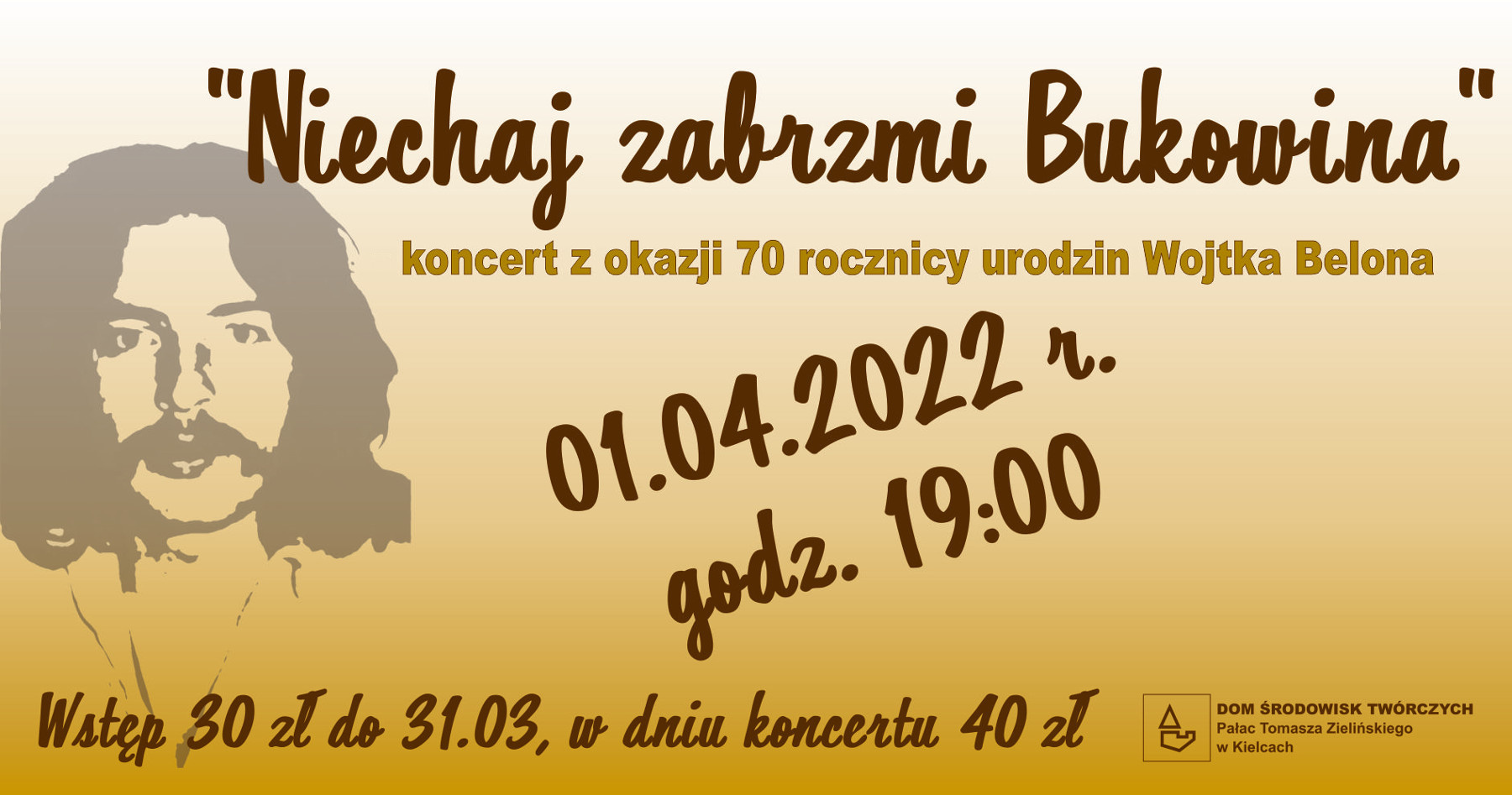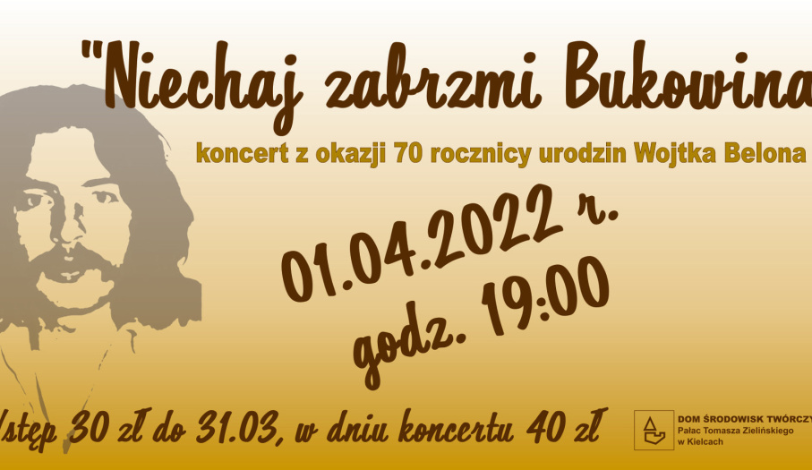 W piątek 1 kwietnia o godz. 19:00 w Sali Koncertowej Pałacyku Zielińskiego odbędzie się koncert "Niechaj zabrzmi Bukowina" z okazji 70 rocznicy urodzin Wojtka Belona. W programie piosenki Wolnej Grupy Bukowina – instrumentalnie oraz Grupa MIKROKLIMAT – wokalnie.