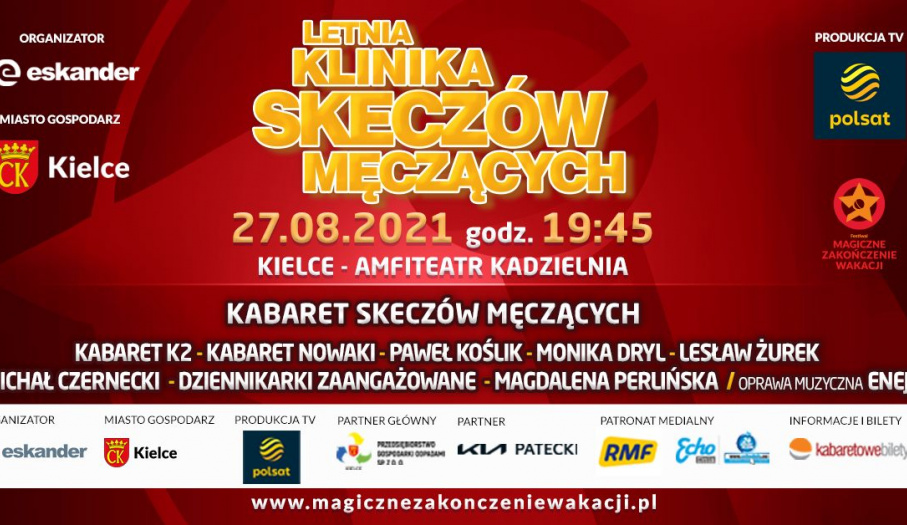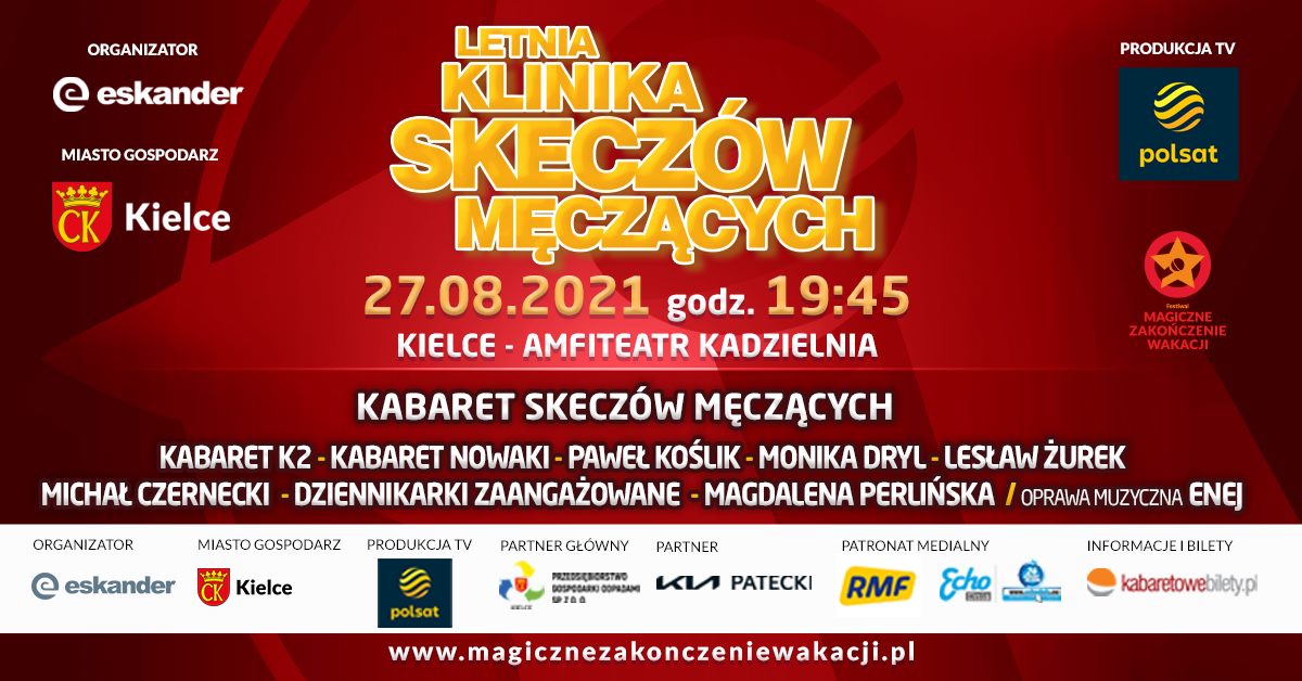 Dla wszystkich fanów Kliniki Skeczów Męczących, a przede wszystkim najlepszej rozrywki opartej na bieżących wydarzeniach mamy wyjątkową niespodziankę. W oparciu o hit Polsatu – Klinikę Skeczów Męczących w Kielcach podczas Festiwalu Magiczne Zakończenie Wakacji odbędzie się Letnia wersja tego widowiska.