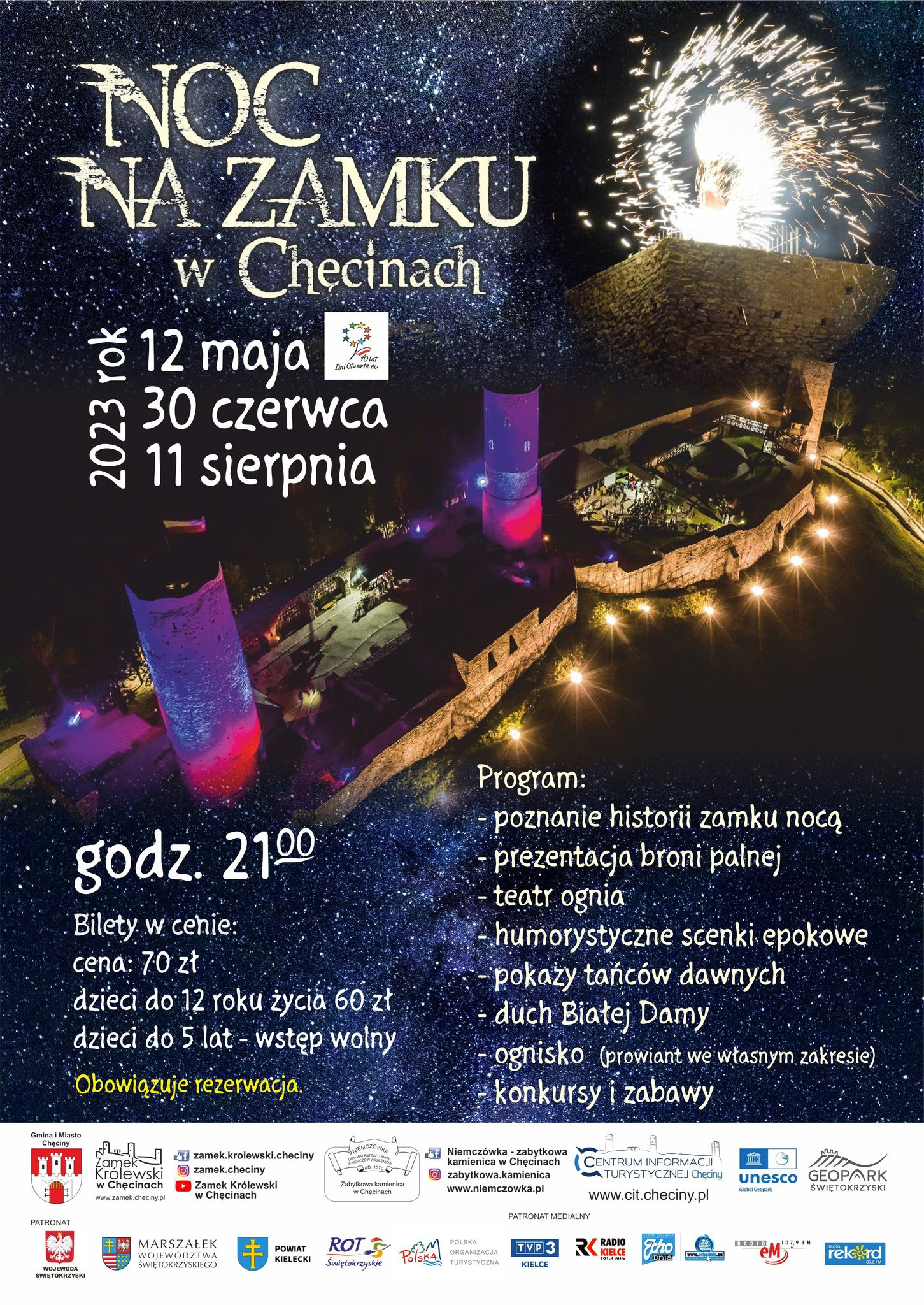 Noc na Zamku w Chęcinach to wyjątkowa i niecodzienna impreza cykliczna ubarwiona starannie dobranymi elementami artystycznymi. Uczestnicy wydarzenia mają okazję w oryginalny sposób przy dobrej zabawie poznać historię oraz legendy związane z warownią.