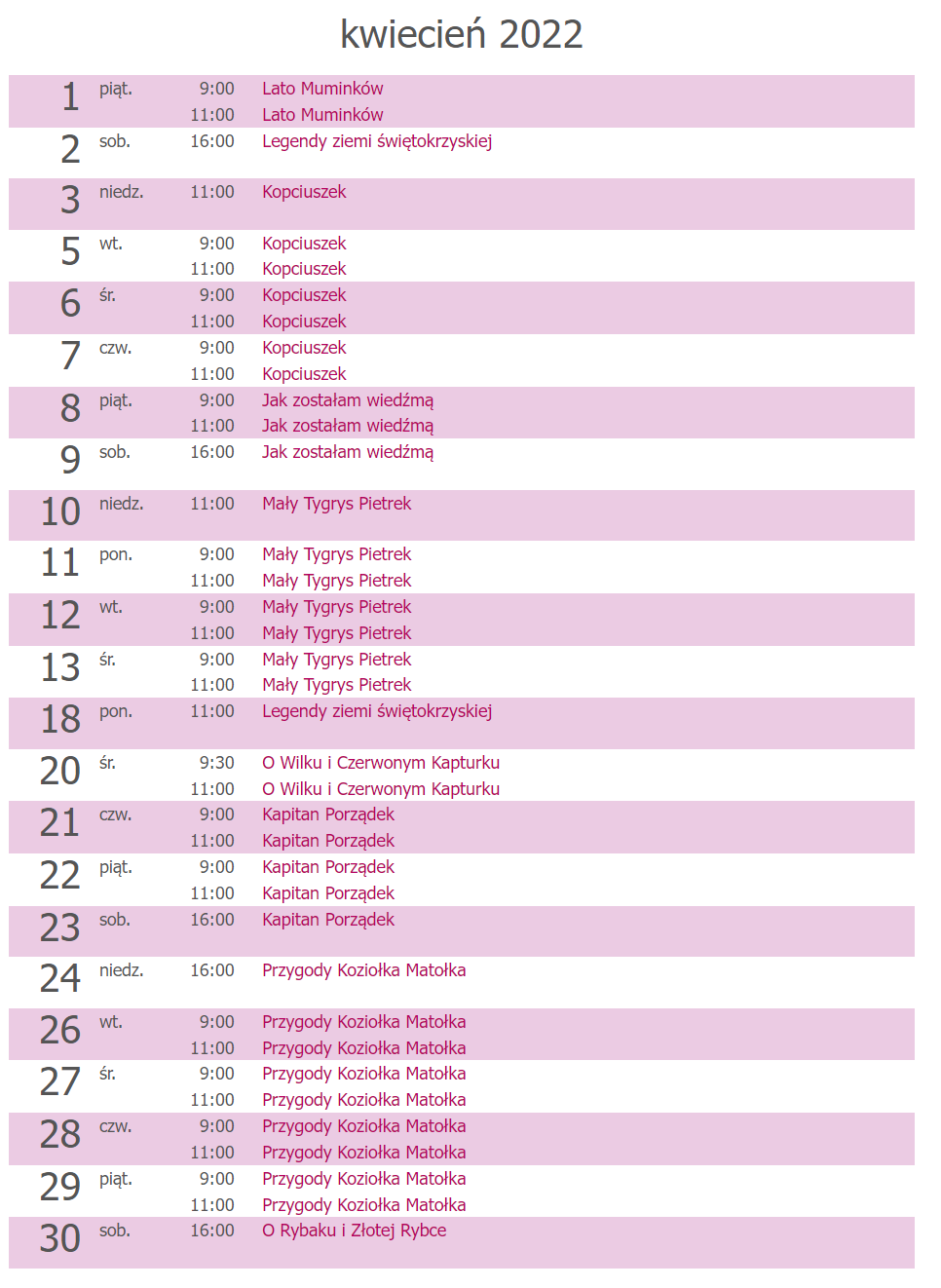 Teatr Lalki i Aktora "Kubuś" - repertuar na kwiecień