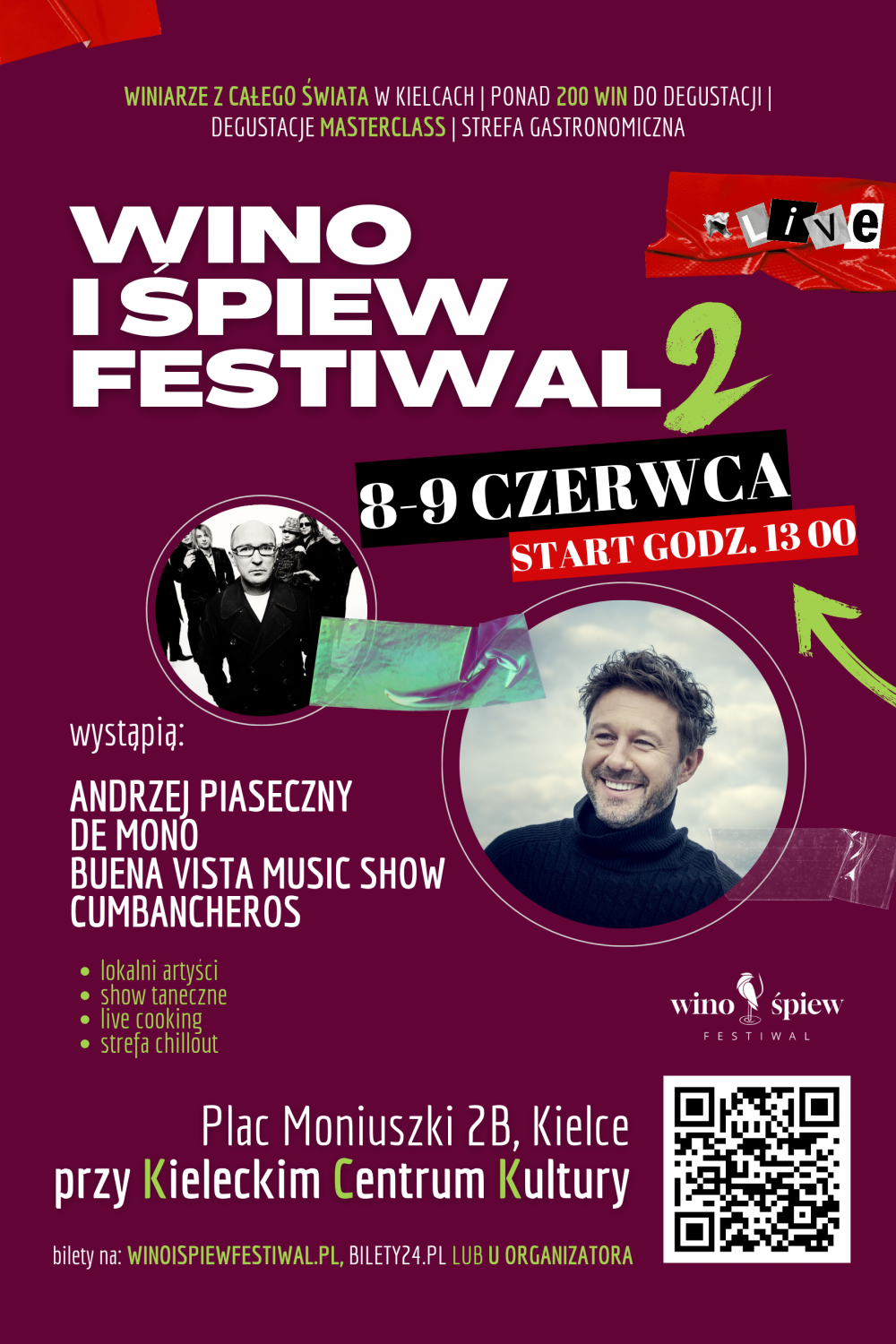 Wino i Śpiew Festiwal to połączenie zamiłowania do wina i sztuki! Każdy z uczestników spotkania będzie mógł spróbować wina z różnych zakątków świata, porozmawiać z winiarzami, poznać nowe smaki i posłuchać gwiazd Polskiej i zagranicznej estrady!