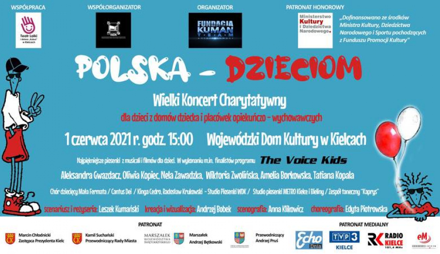 Koncert, który ma szczytny cel i charakter, przeznaczony dla dzieci od lat 7 do 15. Koncert. Ośrodki i osoby prywatne, które chciałyby sprawić potrzebującym dzieciom radość w tym dniu, mogą zgłosić się do organizatora poprzez e-mail: biuro@kumanteam.tv.