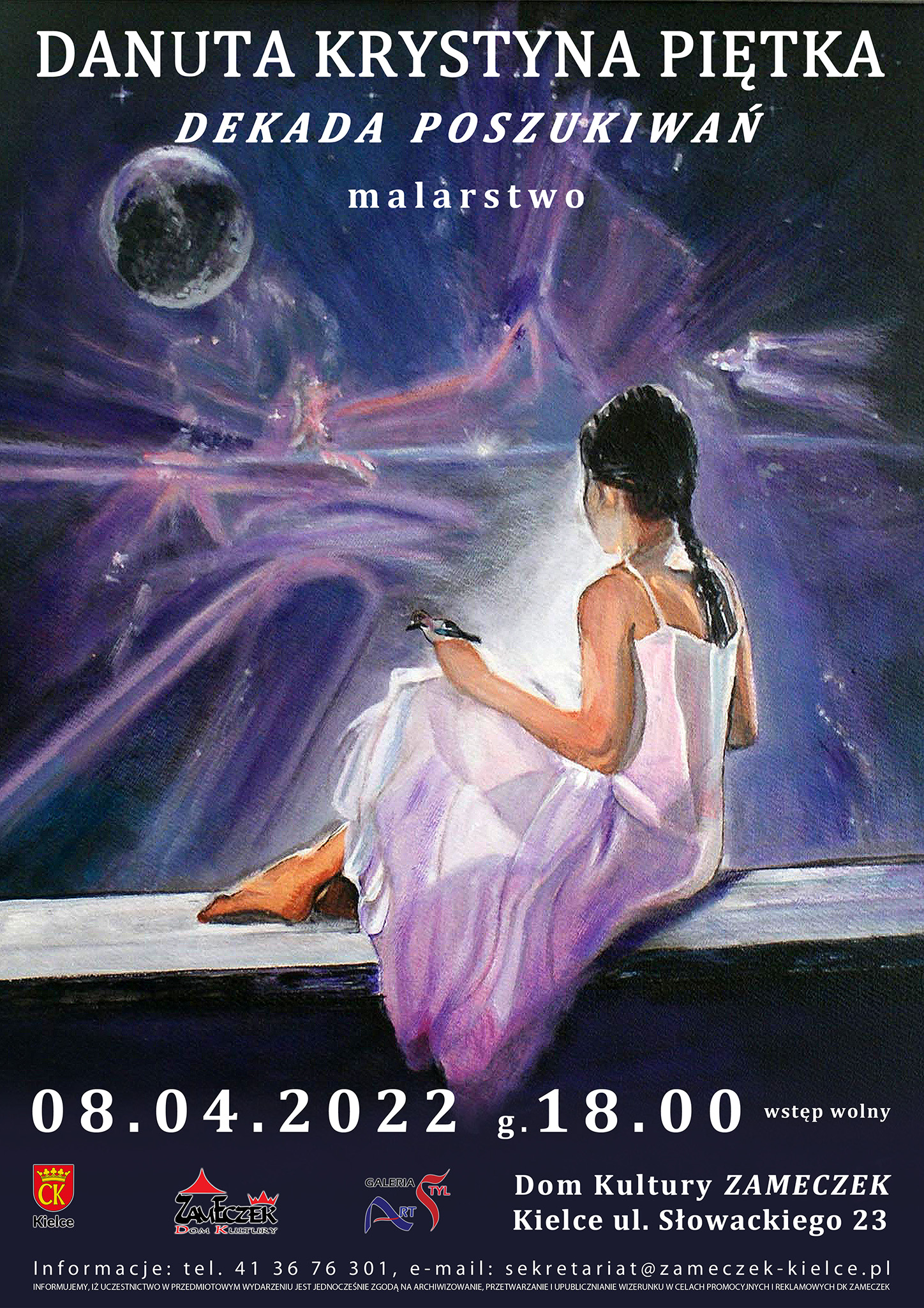 Dom Kultury Zameczek zaprasza na wystawę malarstwa pt. "DEKADA POSZUKIWAŃ", autorstwa Danuty Krystyny Piętki. Wernisaż odbędzie się 8 kwietnia o godzinie 18:00. Wstęp Wolny.