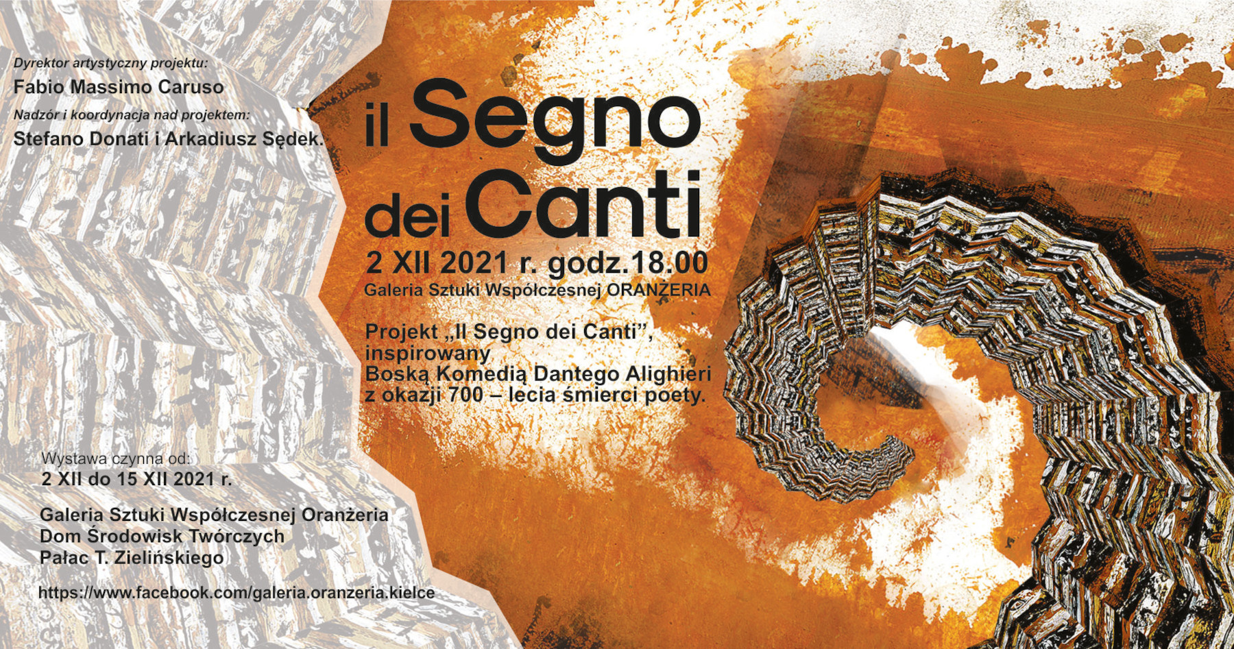 Projekt „Il Segno dei Canti”, inspirowany Boską komedią Dantego Alighieri z okazji 700-lecia śmierci poety. Cykl wystaw obejmuje galerie w Lodi, Rzymie i w Kielcach.