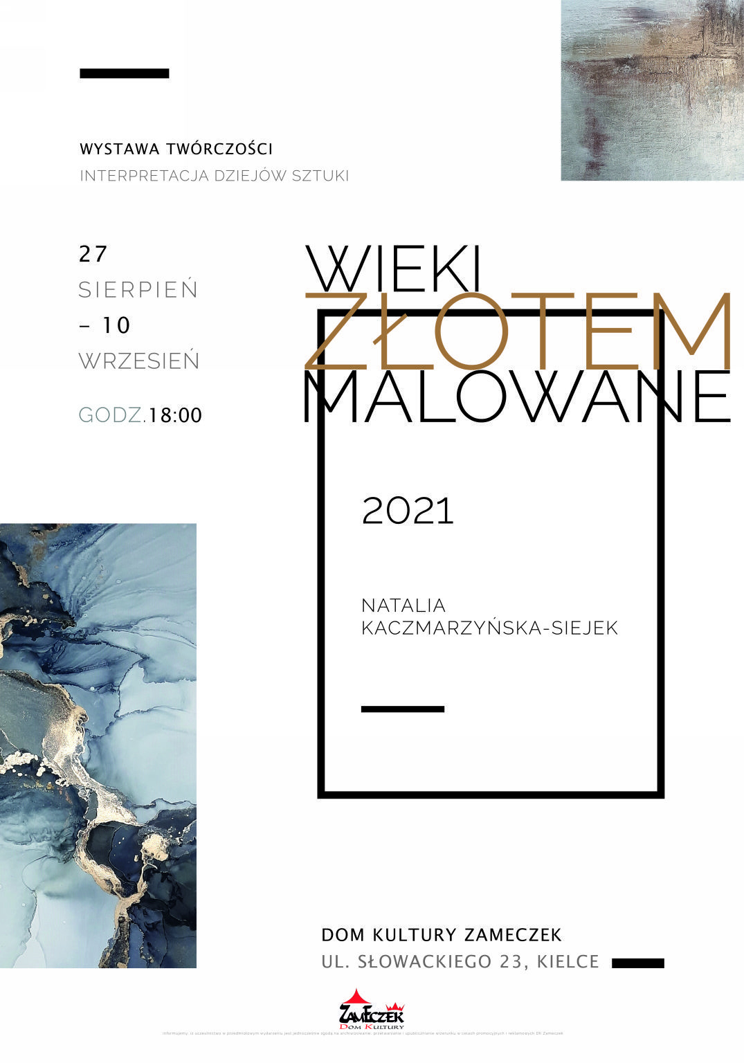 Wystawa poświęcona jest interpretacji najważniejszych okresów w historii sztuki, przez Natalię Kaczmarzyńską-Siejek - młodą Artystkę, której malarstwo cechują wariacje na temat złota. Pierwsze obrazy ze złotym akcentem, powstały w 2014 roku. Wkrótce potem, powstała cała kolekcja w technice textile hardening, którą można było oglądać podczas wystawy w Manufakturze w Łodzi. Jej sztuka została doceniona stypendium od Marszałka Województwa Łódzkiego, a rok później przez stypendium od Prezesa Rady Ministrów.