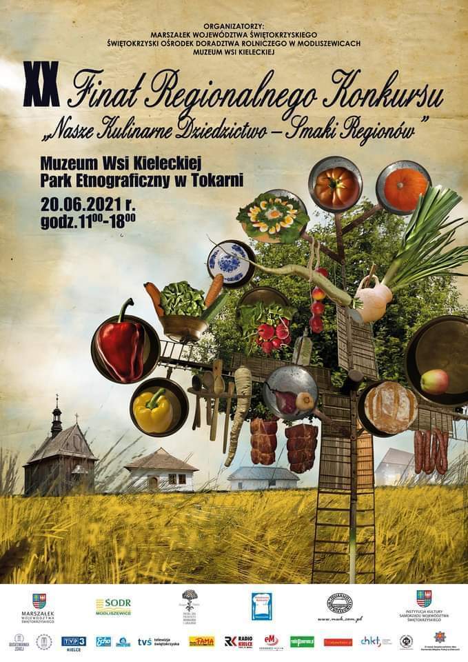 Zapraszamy 20 czerwca 2021 r. do Parku Etnograficznego w Tokarni na Finał Konkursu "Nasze Kulinarne Dziedzictwo-Smak Regionów". Od 20 lat to prestiżowe wydarzenie promuje najlepsze regionalne i tradycyjne produkty żywnościowe oraz najlepsze dania i potrawy regionalne. Celem konkursu jest ich identyfikacja i dokumentacja jako produktów i potraw, przygotowywanych tradycyjnie i czerpiących z polskiej tradycji.